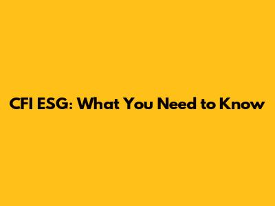 CFI ESG: What You Need To Know