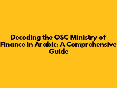 Decoding The OSC Ministry Of Finance In Arabic: A Comprehensive Guide