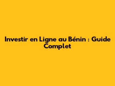 Investir En Ligne Au Bénin : Guide Complet