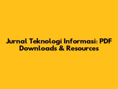 Jurnal Teknologi Informasi: PDF Downloads & Resources