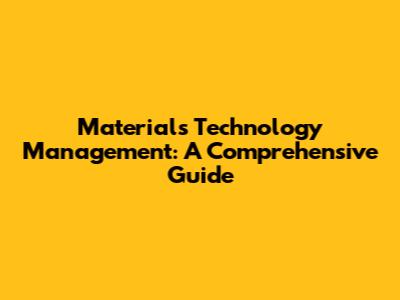 Materials Technology Management: A Comprehensive Guide