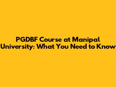 PGDBF Course At Manipal University: What You Need To Know