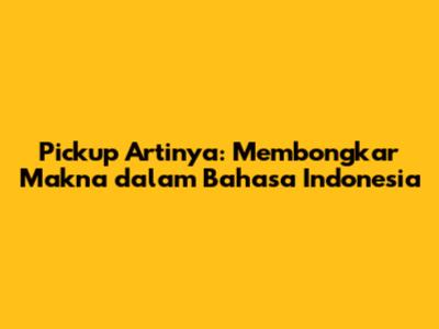 Kata "pickup" ini memang salah satu contoh kata serapan yang paling fleksibel. Penting banget buat kita untuk selalu memperhatikan konteks kalimat saat mendengar atau membaca kata ini agar tidak terjadi kesalahpahaman. Semoga penjelasan ini bikin kalian makin paham ya, dan jangan ragu untuk terus belajar kosakata baru!