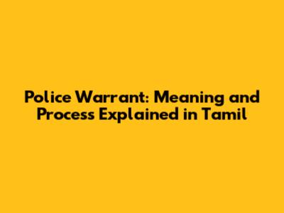 Police Warrant: Meaning And Process Explained In Tamil