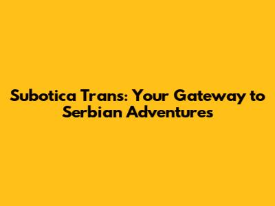 Subotica Trans: Your Gateway To Serbian Adventures