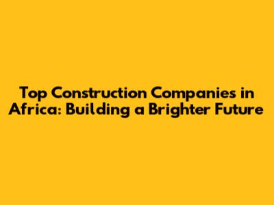 Top Construction Companies In Africa: Building A Brighter Future