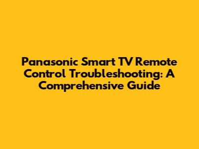 Troubleshoot Your Panasonic Smart TV Remote Control