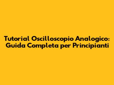 Tutorial Oscilloscopio Analogico: Guida Completa Per Principianti