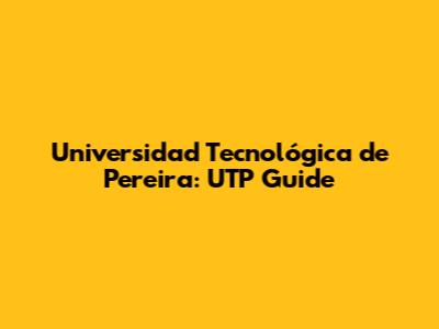 Hey guys! Today, let's dive deep into everything you need to know about the Universidad Tecnológica de Pereira (UTP). Whether you're a prospective student, a current one, or just curious, this guide will cover all the essential aspects of this amazing university. From its history and academic programs to its campus life and research opportunities, we've got you covered. So, let's get started!